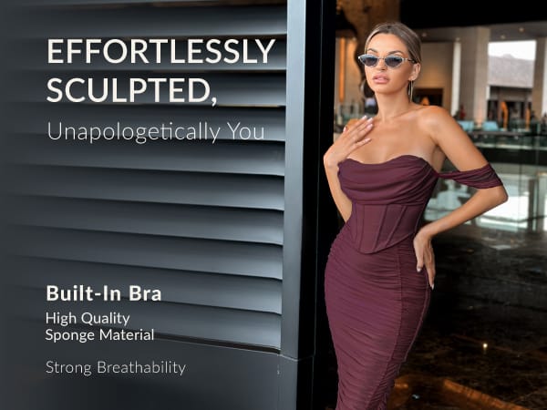 Women's Off-Shoulder Ruched Bodycon Midi Dress with Bra