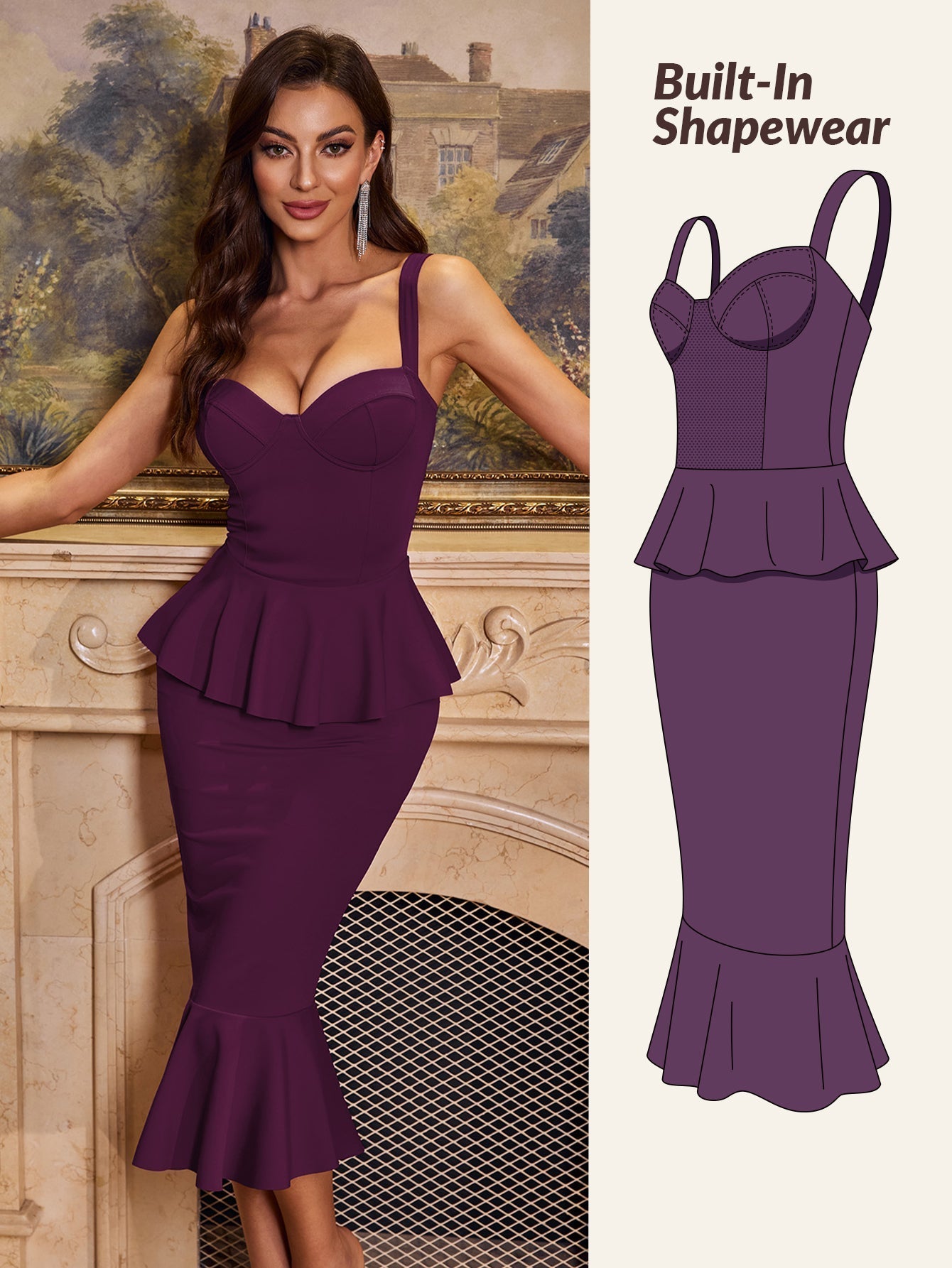Elegant Sophisticated Fitted Built in Shapewear Dress